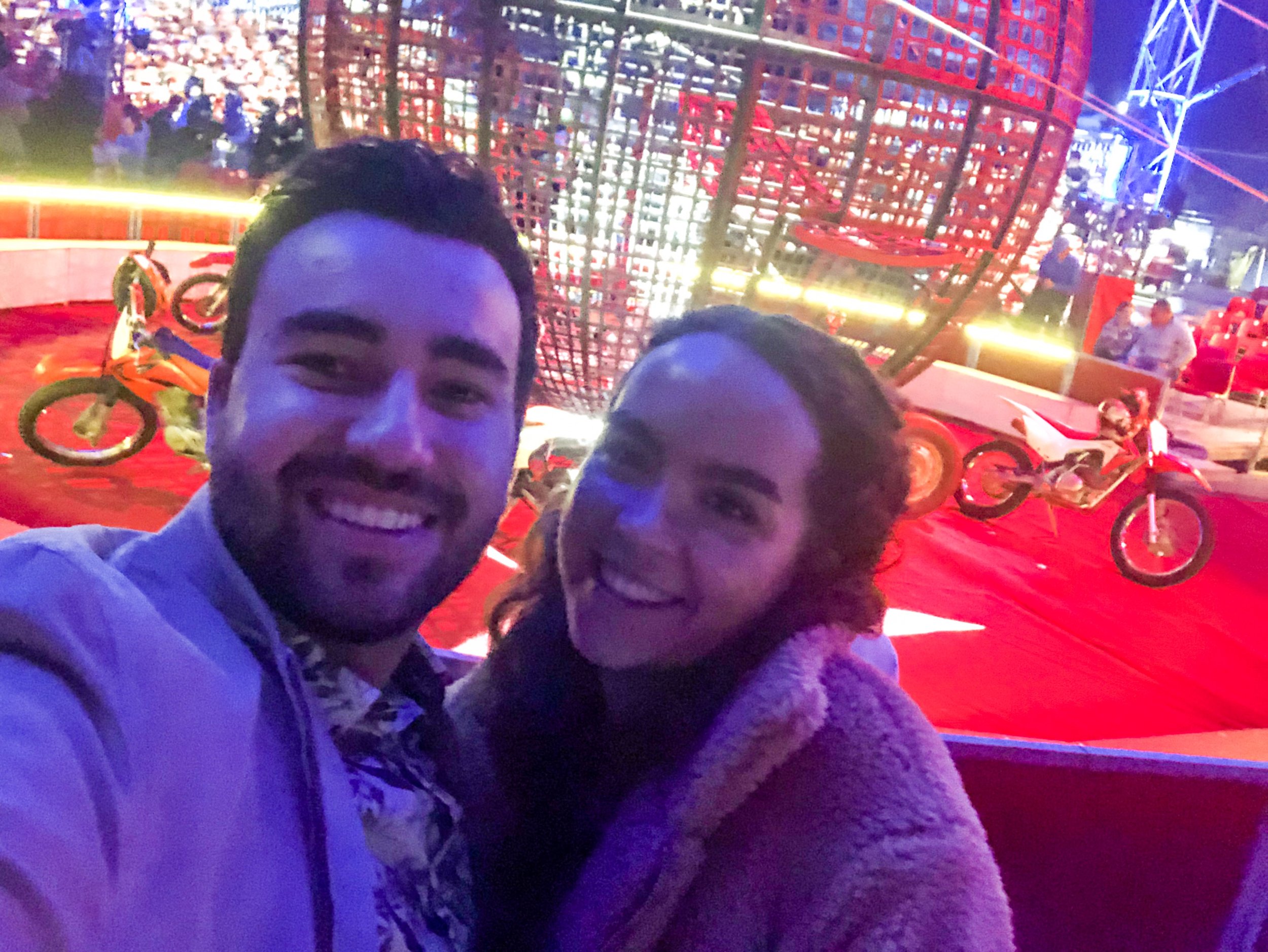 This is their first picture together as a couple, taken at the circus on their fourth date. They both yelled like idiots at the acrobats.